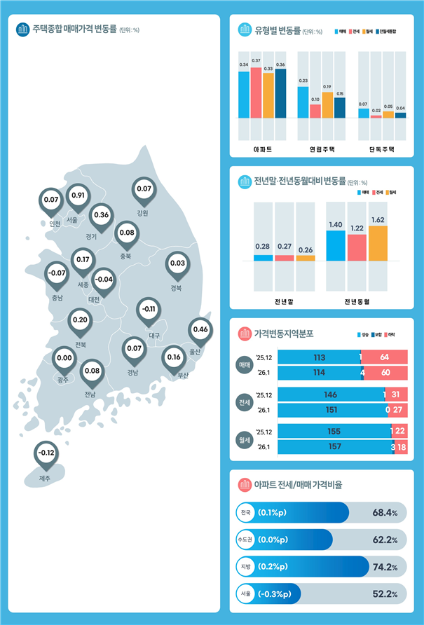 ▲ 1월 주택종합 매매가격 변동률 [한국부동산원 제공]