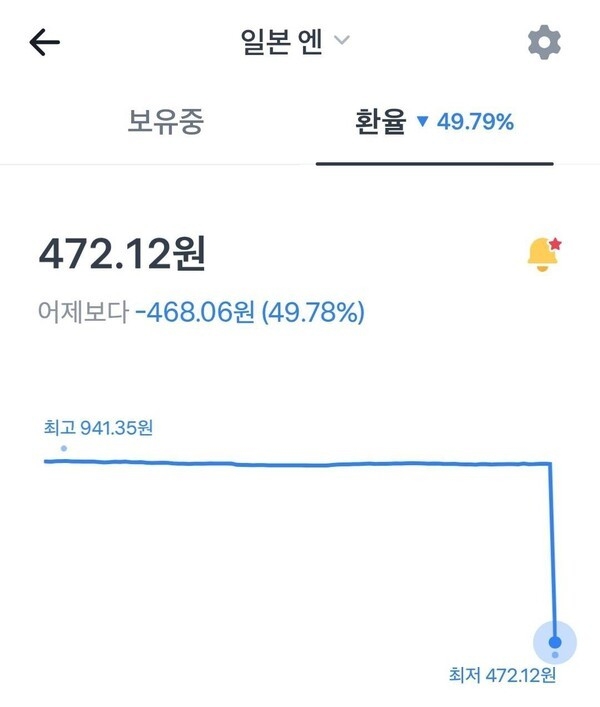 전날 토스뱅크 앱에서는 오후 7시 29분부터 약 7분간 엔화 환전 시 100엔당 472원대 환율이 적용되는 사고가 발생했습니다. 당시 정상 환율은 100엔당 934원대였습니다.