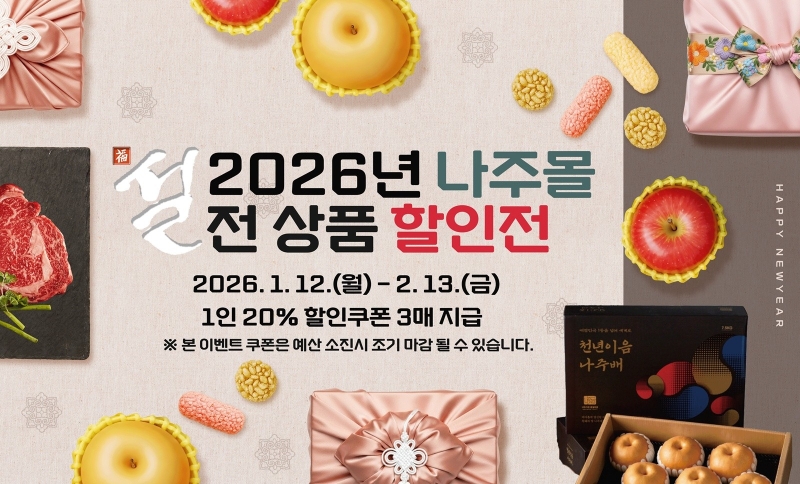 나주시는 다음 달 13일까지 '2026년 나주몰 설 명절 기획전'을 열고, 5만 원 이상 구매 시 전 품목 20% 할인 혜택을 제공합니다.