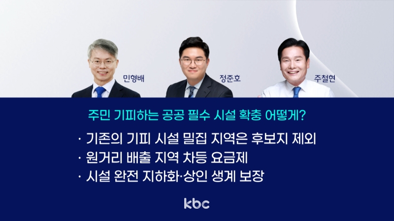지역민들이 꺼리는 기피 시설(쓰레기 소각장 등) 입지 선정 문제에 대해 후보들은 투명한 기준과 과감한 보상을 공통된 해결책으로 꼽았습니다.