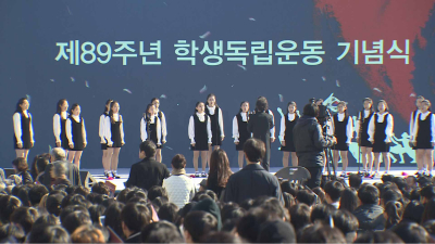 【 앵커멘트 】 오늘은 제89주년 광주학생독립운동기념일입니다. 올해 처음으로 정부 주관 행사로 격상된 기념식은 역대 최대 규모로 거행되면서 달라진 광주학생독립운동의 위상을 실감케 했습니다. 신익환 기자의 보돕니다. 【 기자 】 정부 주관 행사로 처음 거행된 올해 기념식의 주인공은 학생이었습니다. '학생이 지켜온 정의, 그 위대한 역사의 시작'이란 주제에 맞춰 학생들이 대거 참여했습니다. 당시 학생독립운동을 주도한 광주일고, 전남여고 후배들은 연극으로 운동 전개 과정을 재현하고, 독립운동