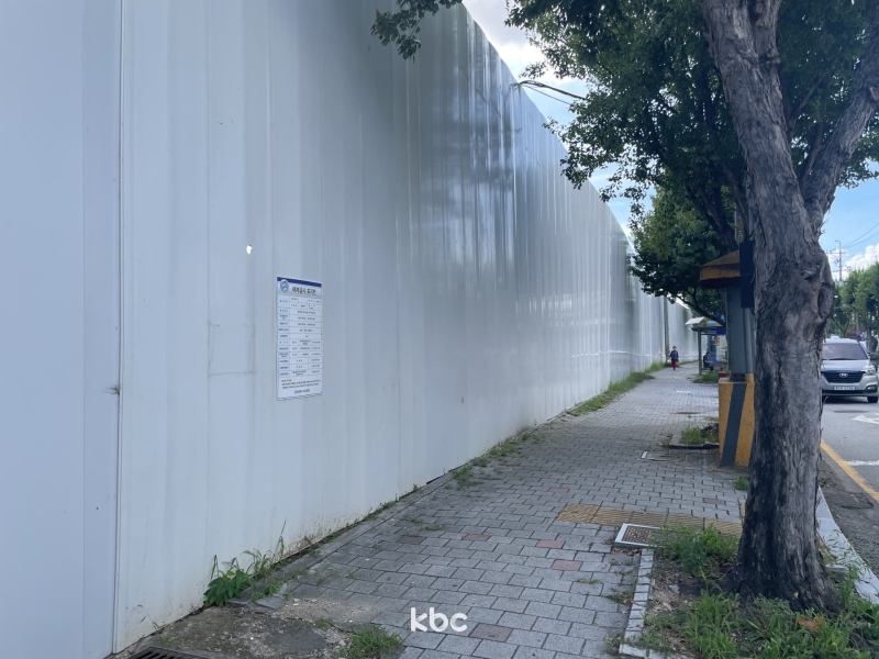 ▲ 현재 철거된 야구의 거리 모습. 공사 가벽이 세워져있다