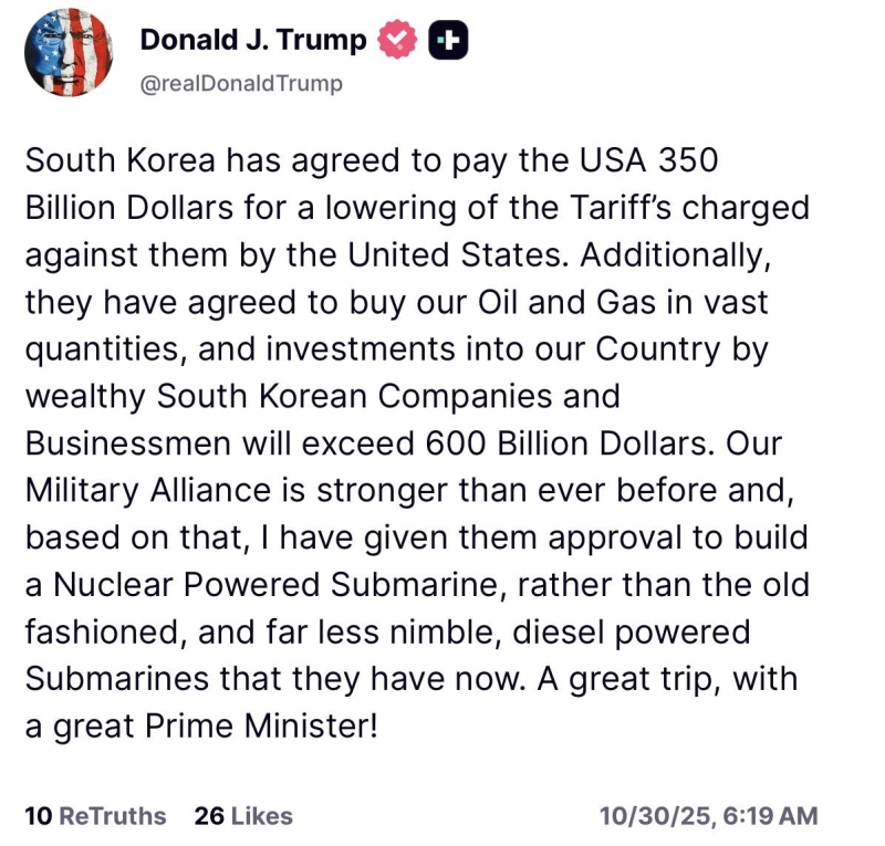 도널드 트럼프 미국 대통령이 30일 자신의 소셜미디어(SNS) 트루스소셜에 한국 대통령을 '총리'로 잘못 표기했다 수정하는 일이 발생했습니다.