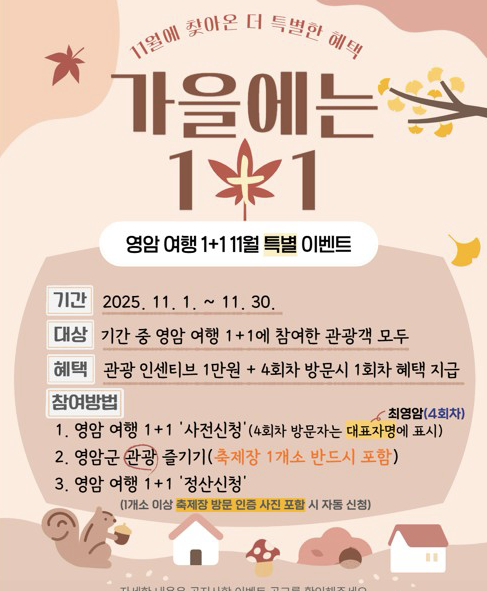 영암군이 여행객에게 혜택 가득한 가을을 선물합니다.
