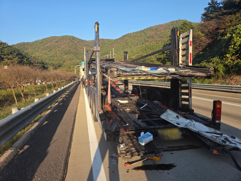 4일 전남경찰청 고속도로순찰대 5지구대에 따르면 전날 오후 3시 45분쯤 나주시 문평면 국동리 무안광주고속도로 편도 2차선 도로(광주 방면)에서 60대 남성 A씨의 25톤 덤프 트럭이 앞서가던 50대 남성 B씨가 몰던 6.5톤 사료 운반 트럭을 들이받았습니다.