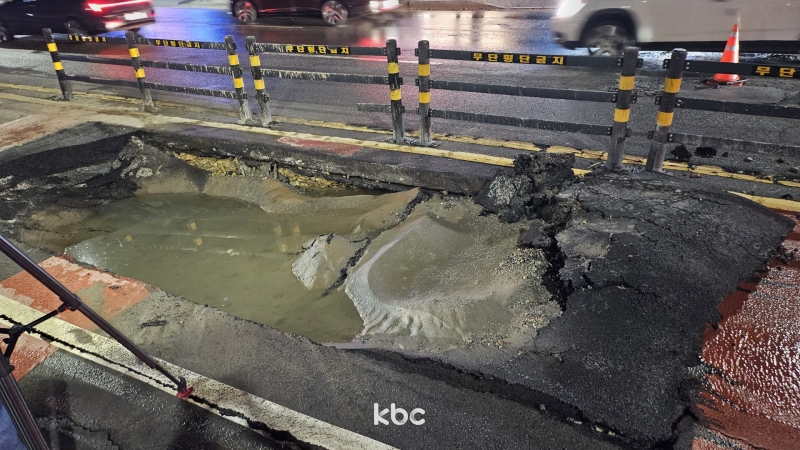 이로 인해 도로 침하와 침수 피해가 발생해 차량 통행이 통제되는 등 시민들의 불편이 이어지고 있습니다.