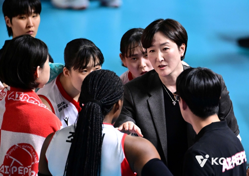 ▲ 작전 지시하는 페퍼저축은행 장소연 감독 [KOVO]