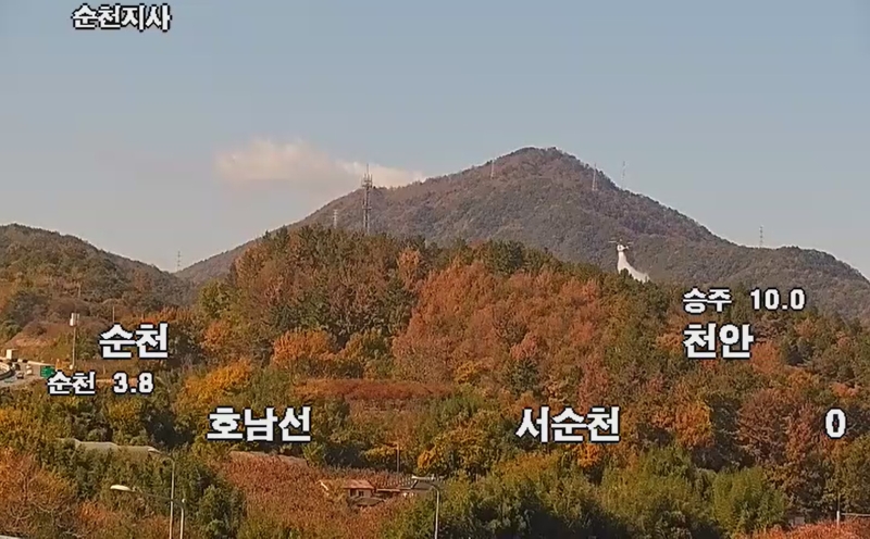 ▲ 21일 오전 10시 45분쯤 전남 순천시 서면 동산리 호남고속도로 인근 야산에 화재가 발생했다 [고속도로 CCTV]