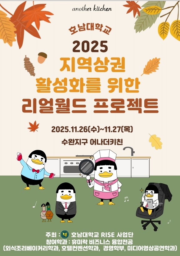 지역 상권 활성화와 실무중심 교육을 연계한 특화형 현장실습 프로그램 '2025 리얼월드 프로젝트'가 오는 26일부터 이틀간 광주 수완지구 복합외식문화공간 어나더치킨에서 열립니다.