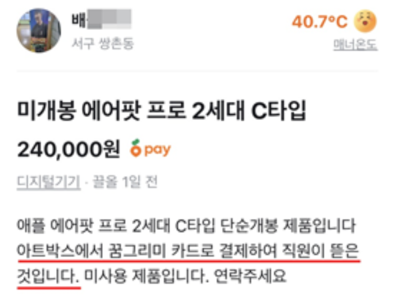 시민모임에 따르면, 중고거래 플랫폼에는 꿈드리미 카드로 문구점에서 36만 원에 구입한 무선 이어폰을 24만 원에 판매한다는 글이 게시됐습니다.