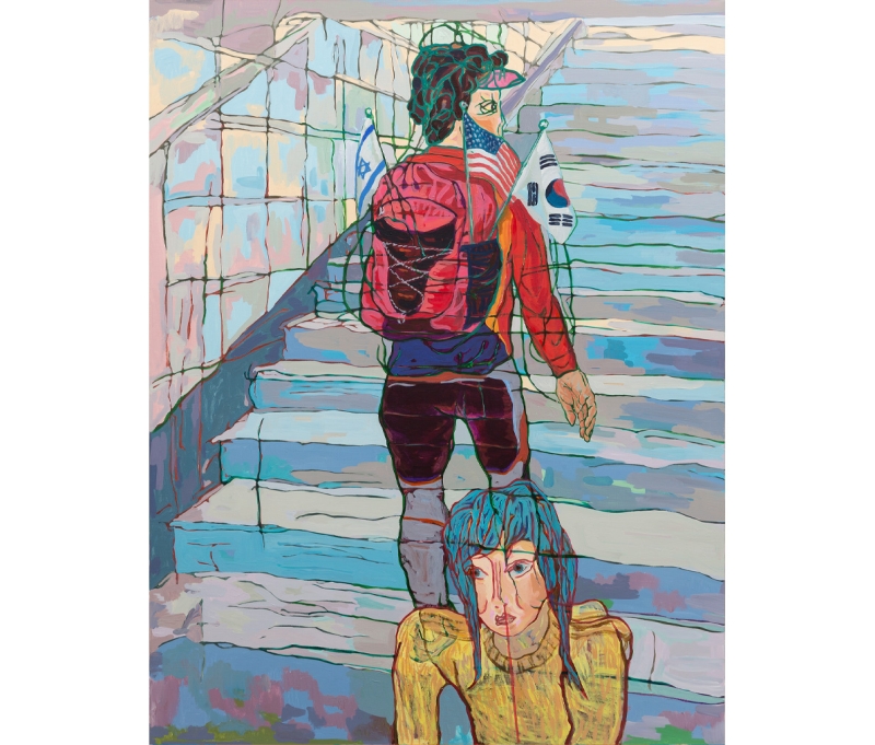 배낭에 태극기와 성조기, 이스라엘 국기를 꽂고 집회에 나가는 여성의 모습을 담은 <헐, Oh my god>엔 작가의 유머와 냉소가 섞여 있습니다.