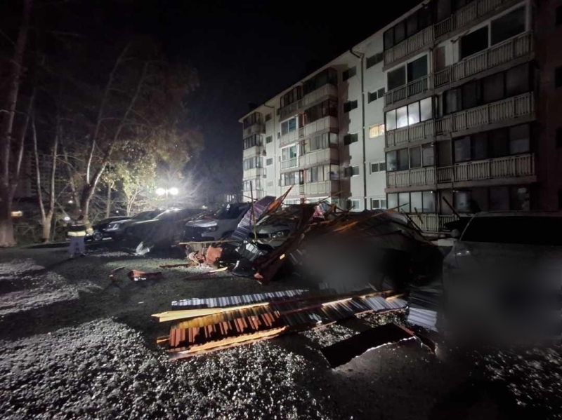 1일 강원특별자치도소방본부에 따르면 이날 새벽 2시 53분쯤 속초시 교동 한 아파트 주차장에 지붕 구조물이 날아들어 차량 6대가 부서졌습니다.