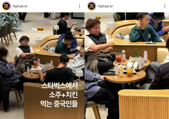 1일 한 소셜미디어(SNS) 계정에는 '스타벅스에서 소주+치킨 먹는 중국인들'이라는 제목의 게시물이 올라왔습니다.