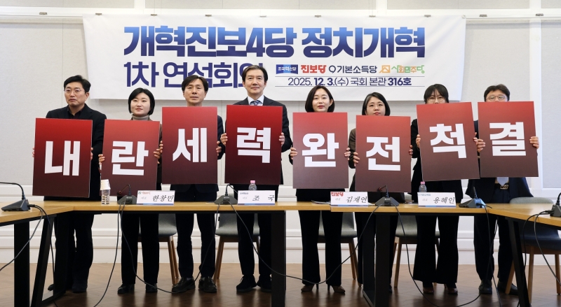 기본소득당과 사회민주당, 조국혁신당, 진보당 등 야 4당 대표들이 3일 제1차 야 4당 연석회의를 개최하고 정치개혁을 위한 공동선언문을 발표했습니다.