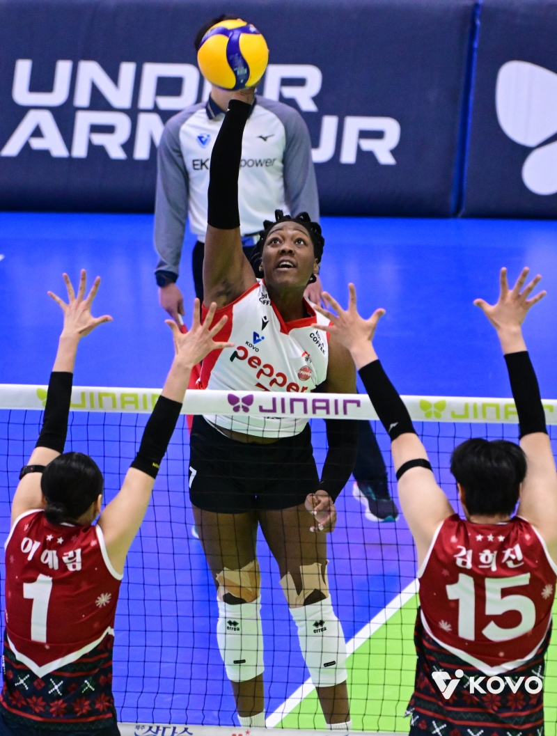 이날 경기에서 외국인 주포 조이가 31득점(후위 10·블로킹 2)으로 양 팀 최다 득점을 기록하고, 이한비가 11득점으로 힘을 보탰지만 흐름을 바꾸기에는 역부족이었습니다.