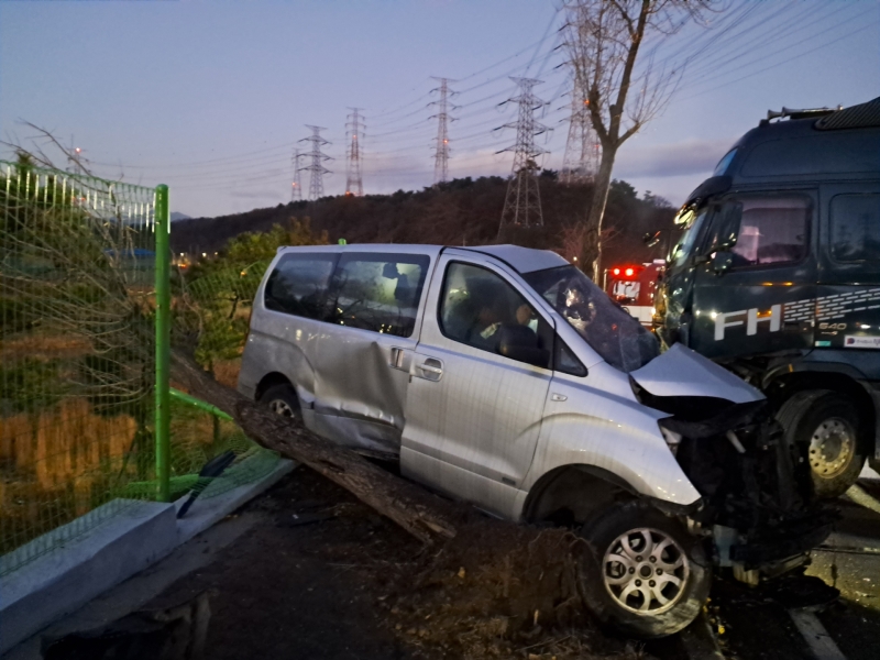 이 사고로 승합차 운전자였던 40대 남성이 심정지 상태로 병원에 옮겨졌지만 끝내 숨졌습니다.
