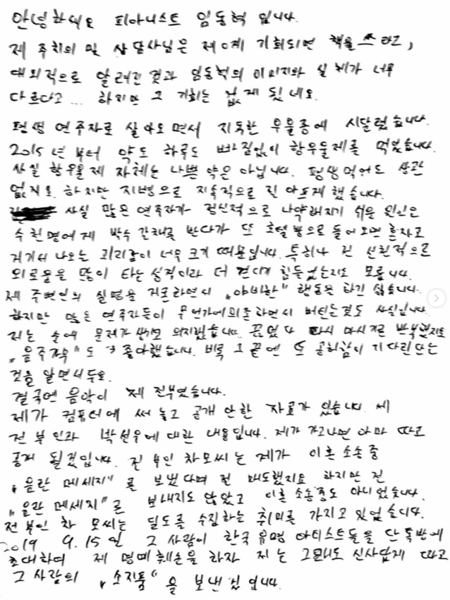 ▲ 피아니스트 임동혁 씨가 자신의 SNS에 올린 글 [임동혁 인스타그램]