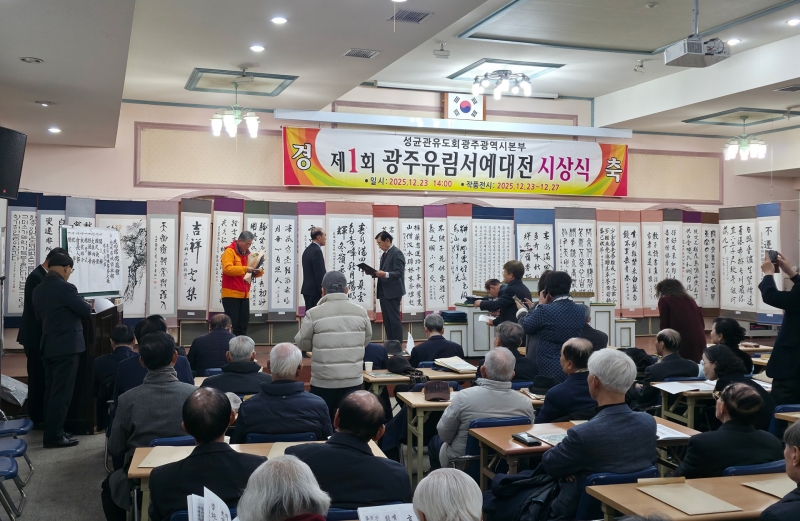 성균관유도회광주시본부는 23일 광주향교 유도회관에서 '제1회 광주유림서예대전' 개막식과 시상식을 열었다고 밝혔습니다.