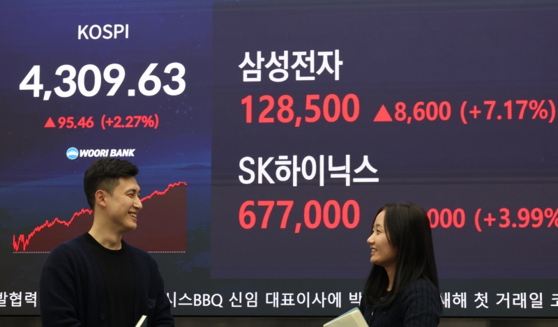 코스피는 2025년 종가보다 95.46포인트 급등한 4,309.63으로 장을 마쳤습니다.