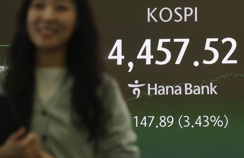 이날 코스피는 전장보다 147.89포인트(3.43%) 오른 4,457.52에 장을 마치며 직전 거래일 기록한 종가 기준 사상 최고치를 하루 만에 경신했습니다.