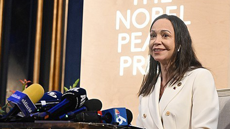 베네수엘라의 야권 지도자이자 지난해 노벨 평화상 수상자인 마리아 코리나 마차도가 자신의 영예를 도널드 트럼프 미국 대통령과 나누고 싶다는 뜻을 밝혔으나, 노벨 위원회로부터 거부당했습니다.