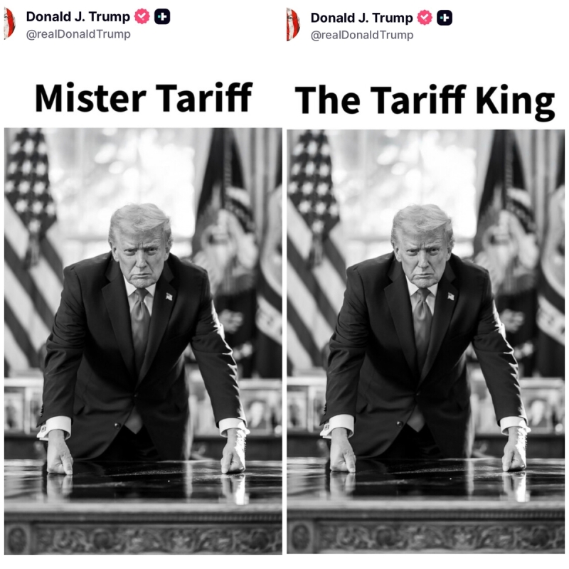 트럼프 대통령은 또 다른 게시물에도 같은 사진을 올리며 문구만 "미스터 관세(Mister Tariff)"로 바꿔 달았습니다.