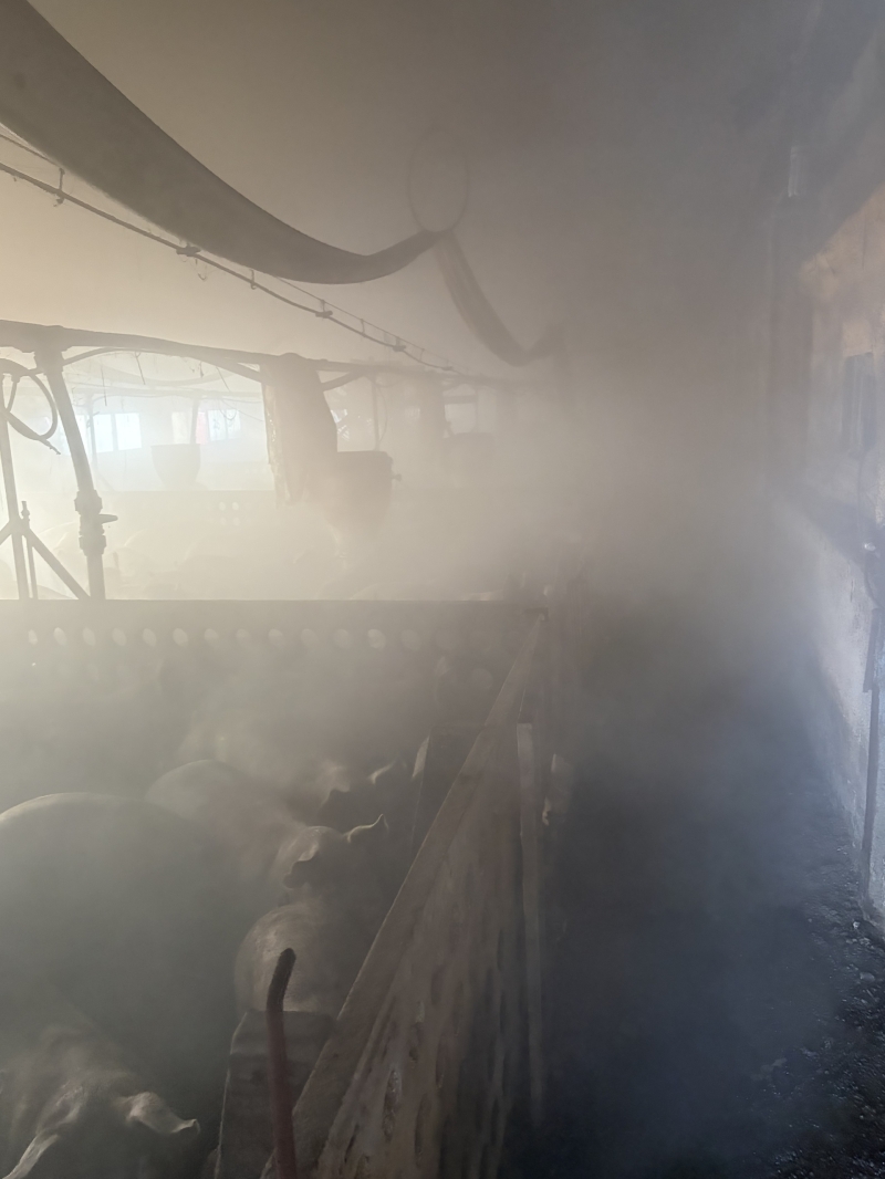 또, 비육돈 500마리가 연기를 흡입했으나, 폐사한 돼지는 없었습니다.