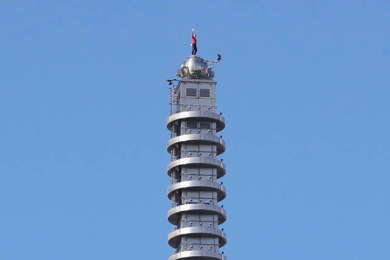 꼭대기에 도달한 그는 환한 미소로 손을 번쩍 들어 올린 뒤, 휴대전화를 꺼내 셀카를 찍는 여유까지 보였습니다.