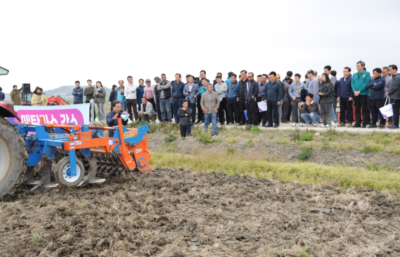 ▲ 전남농업기술원이 실시한 온실가스 감축을 위한 벼 마른논 써레질 연시회 [전라남도]