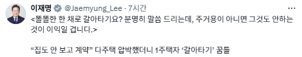이재명 대통령은 오늘(5일) 새벽 SNS를 통해 관련 기사를 공유하며 "똘똘한 한 채로 갈아타기요? 분명히 말씀드리는데, 주거용이 아니면 그것도 안 하는 것이 이익일 것"이라고 밝혔습니다.