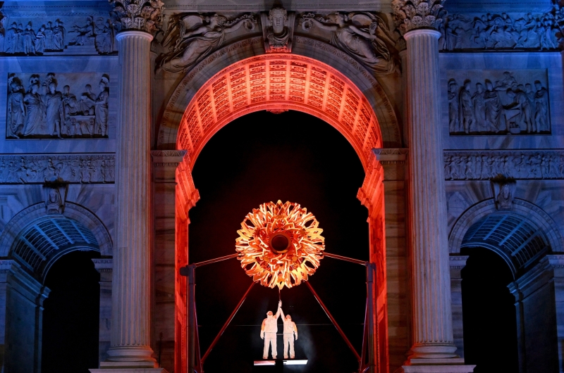 선수단 선서 이후에는 밀라노의 평화의 아치와 코르티나담페초 디보나 광장에 설치된 두 개의 성화대가 각각 최종 주자에 의해 동시에 점화됐습니다.
