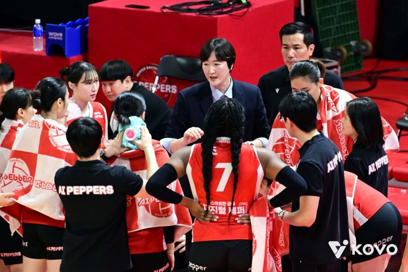▲작전지시하는 장소연 페퍼저축은행 감독 [KOVO]